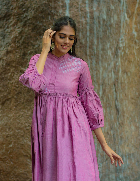 Peach & Purple Pure Silk Handloom Gadwal Saree with Kanchi Border & Butti Weaving