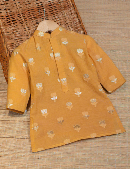 Kids boys - Yellow Kurta bottom with Organza Jacket
