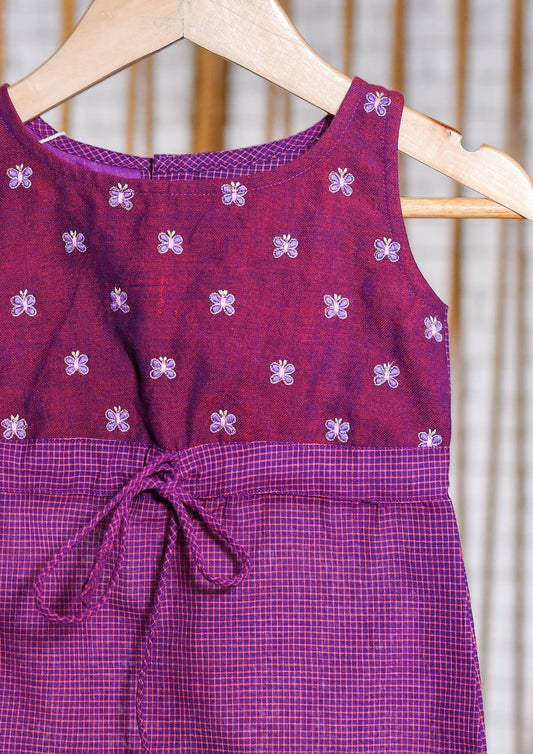 Kids girls - cotton lavender dress with hand embroidery