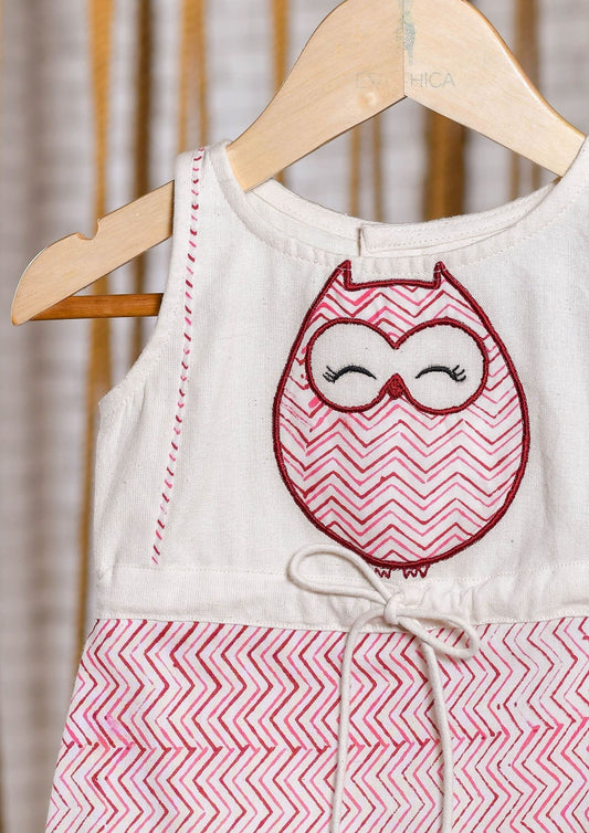 Kids girls - cotton one piece dress in pink and white