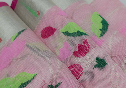 Off White Handloom Ikat Silk Hand Embroidered Dress