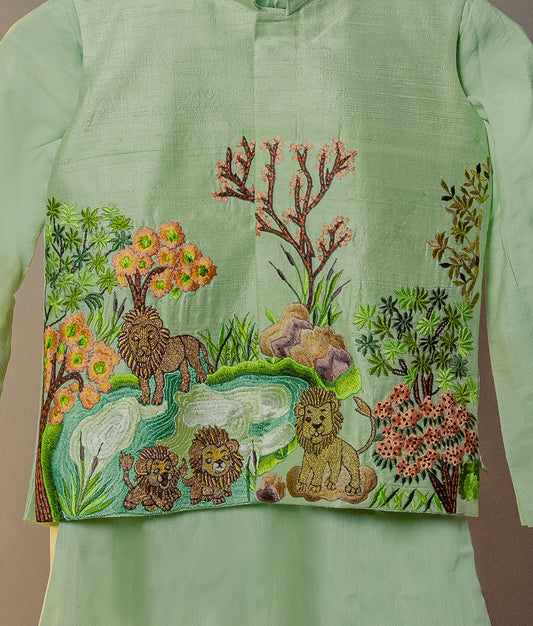 Kids boys - The lions of gir - embroidered thematic jacket set