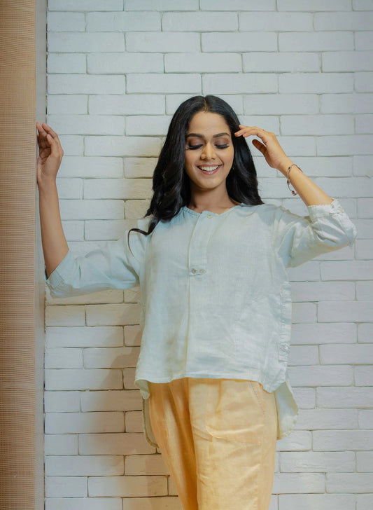 Linen Asymmetric Tunic / Blouse with Hand Embroidery Detail