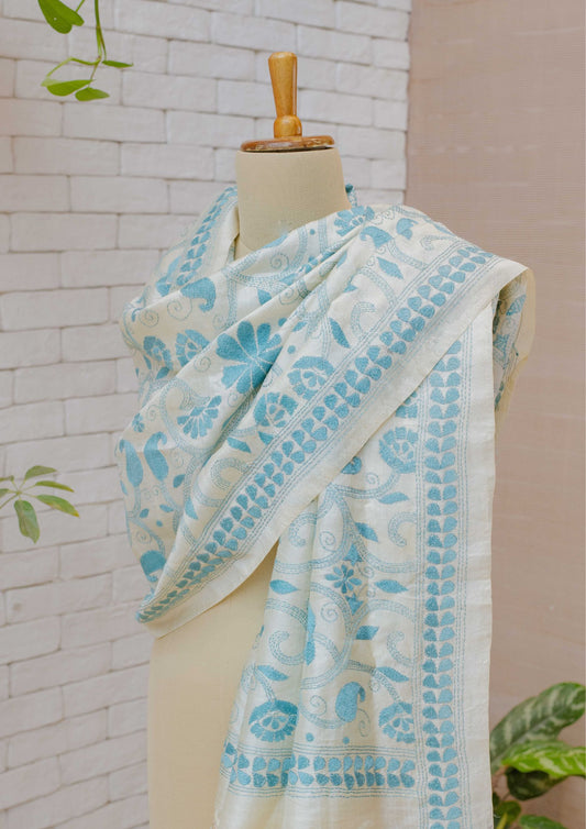 Hand Embroidered Kantha Work Dupatta in Rust Colour