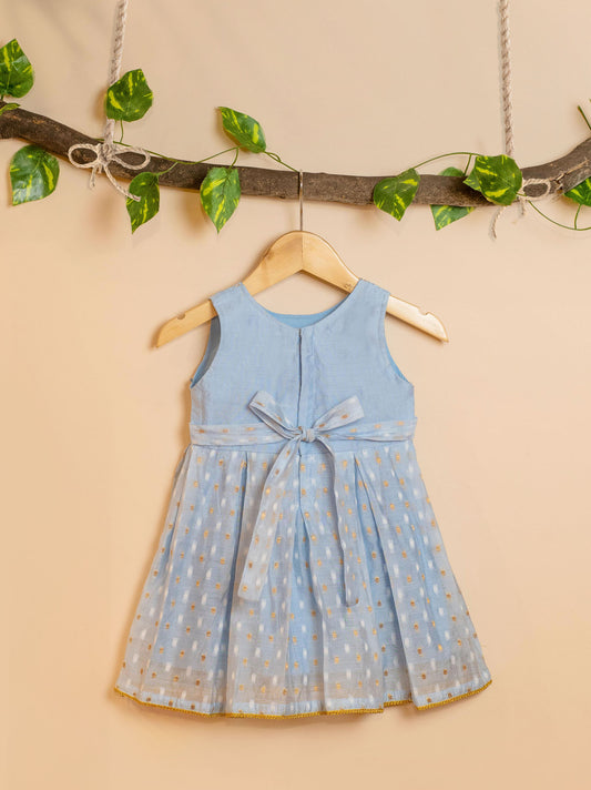 Kids girls - Sky Blue Chanderi Frock with Mirror Embroidery