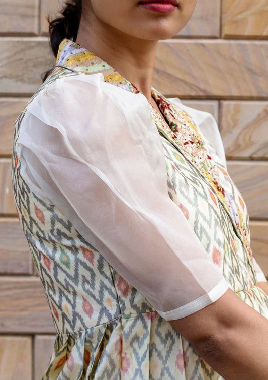 Off White Handloom Ikat Silk Hand Embroidered Dress