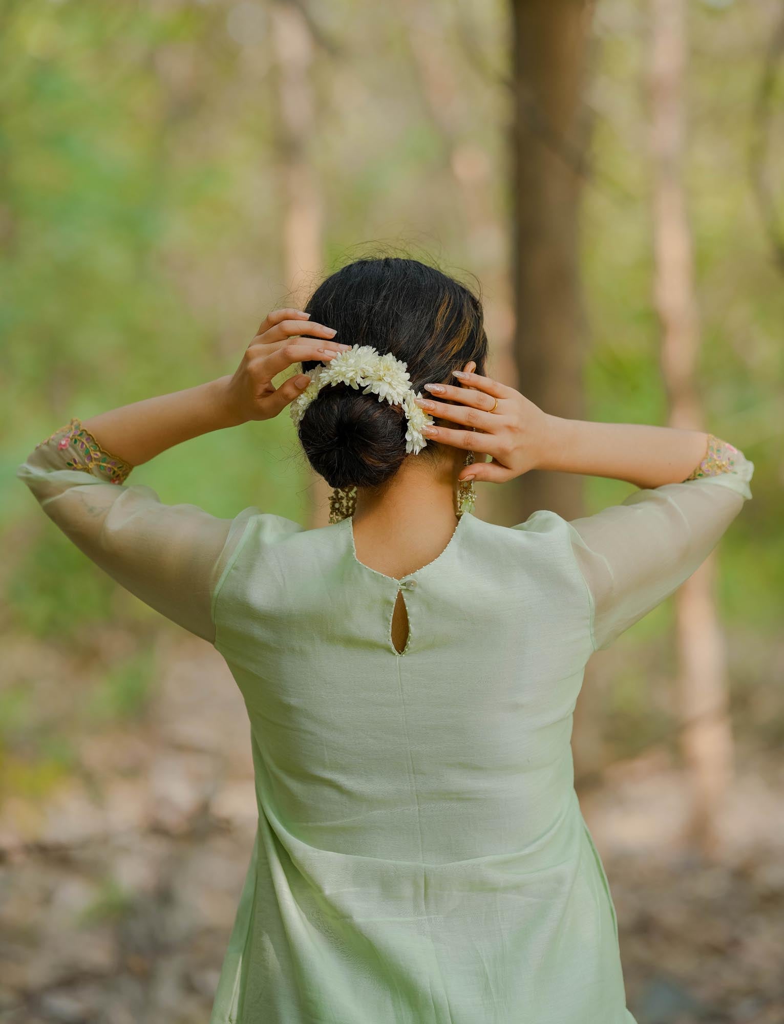Women’s wear embroidered chanderi kurta set in pastel pista green