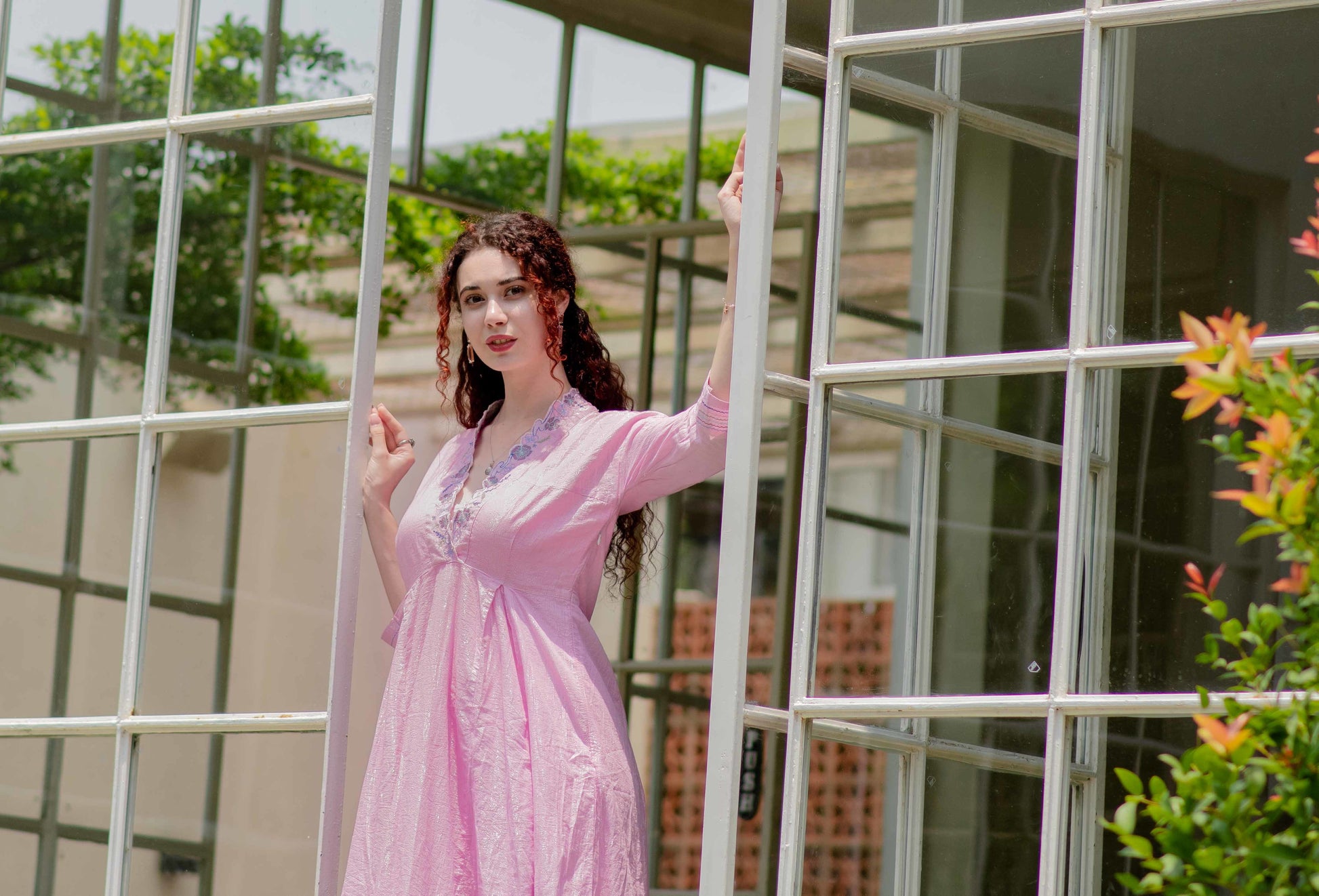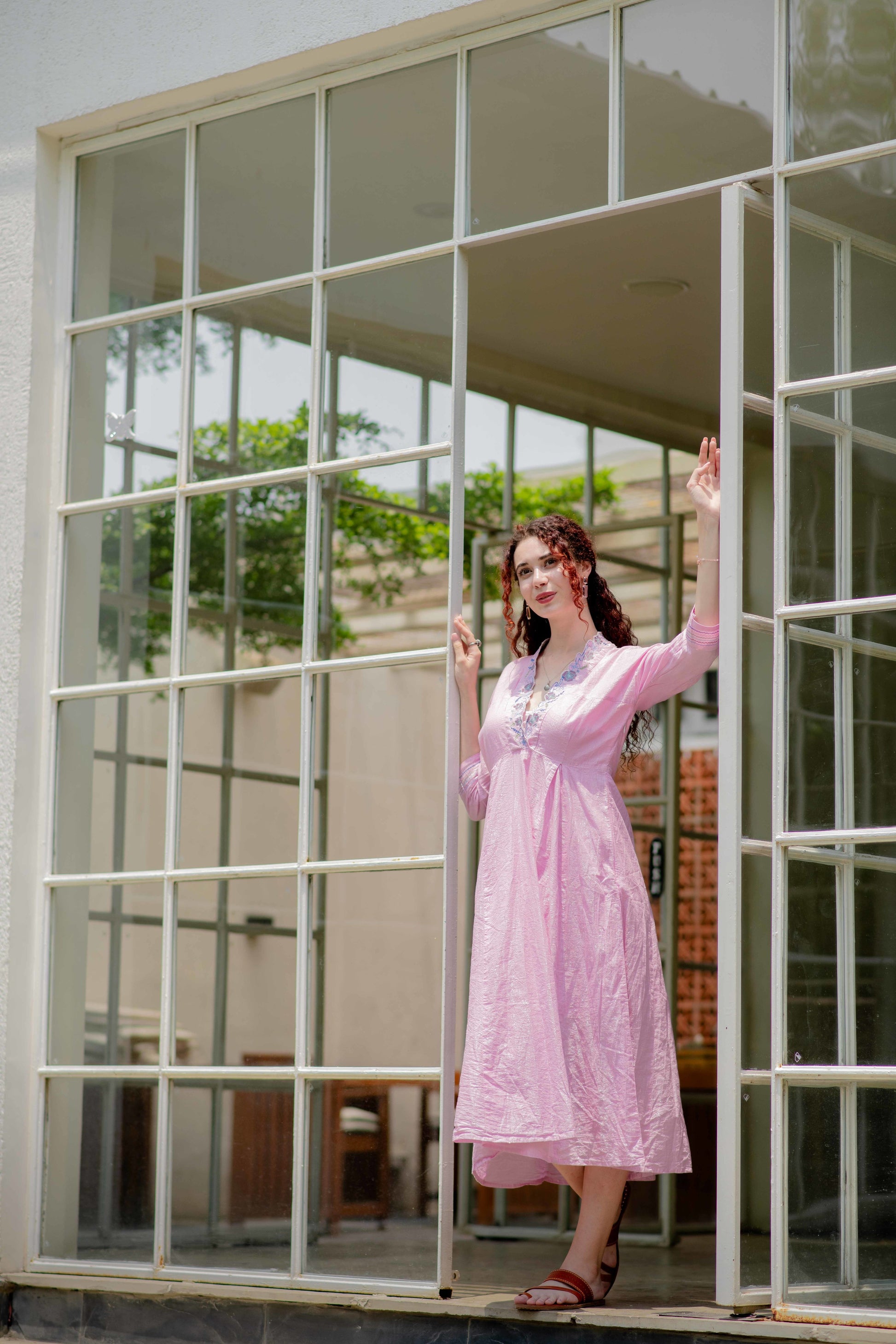 Women’s wear - Chic A line shimmer Embroidered Dress with Inner