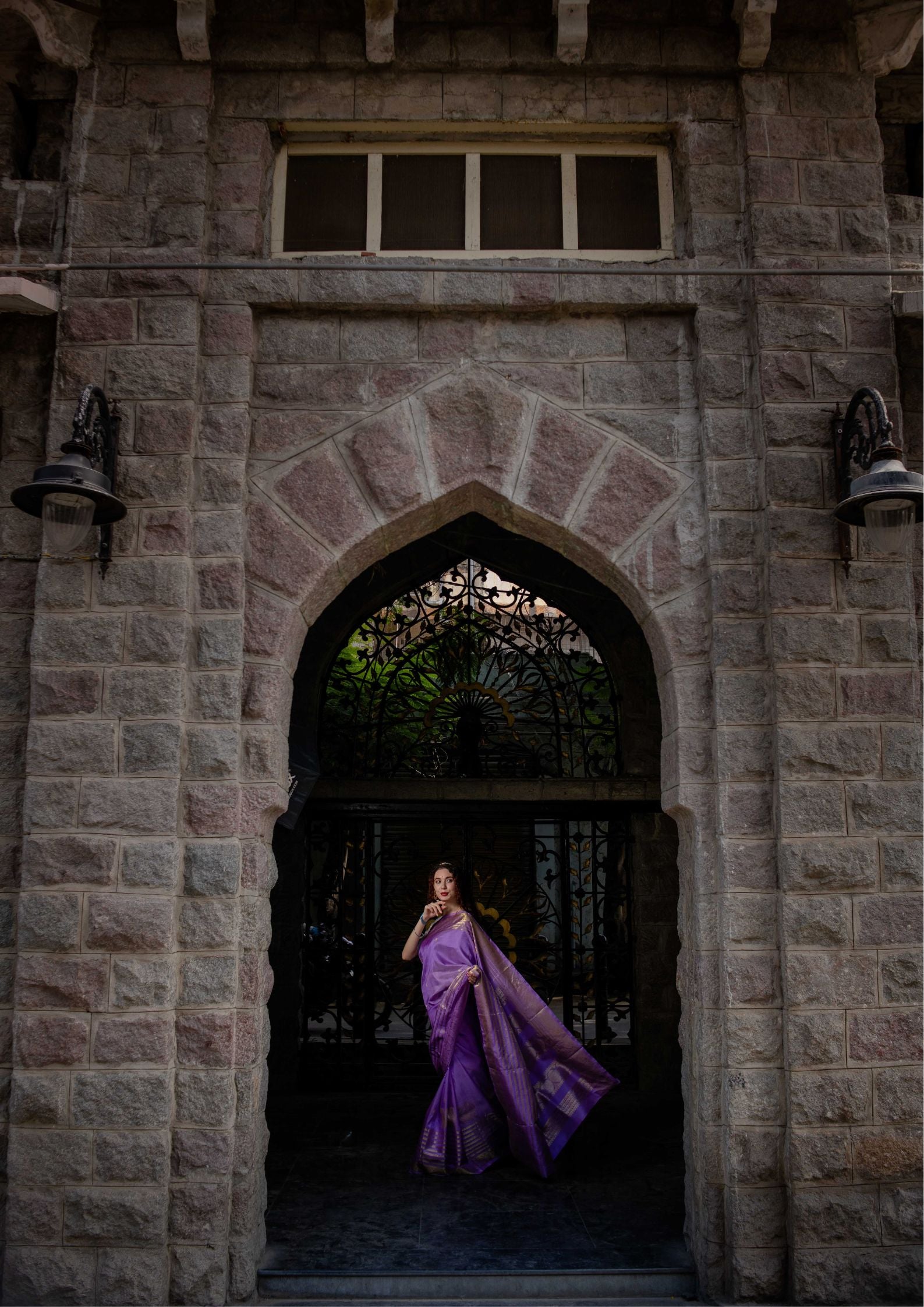 Saree - Pure Silk Handloom Kanchi Saree in Violet Colour