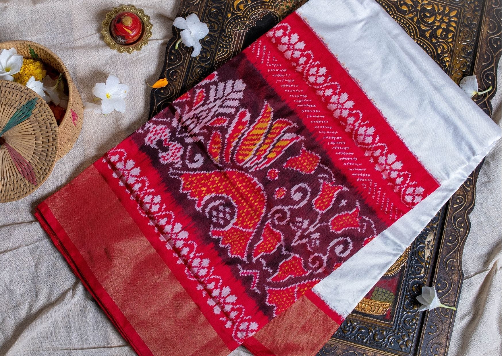Pallu and blouse in ikat (both in red with ikat motifs)